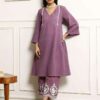 Graceful Women’s Embroidered Cotton Kurta with Pants ? Size (XL)