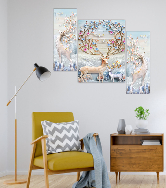Presents This Set Of 3 Amazing Paintings For Your Wall . The Painting Will Completely Change The Atmosphere Of The Room Whire It is Placed . The Paintimg Is Made On Heavy Wooden Board And Has A Digital UV Coating On It Which MAKES It Very Easy To Clean . Pricing Of The Product Is Made Very Reasonable From Our Brand As Per The Quality We Are Providing To Our Customers, We Assure That You Will Not Regret Your Purchase, Is Well Known for Its After Sale Services And In Case If You Feel Some Problem With Any Of Our Product Than You Can Replace It For Free With No Additional Cost . This painting offers a stylish look to your wall as this piece includes three themes it is vastu and also have the essence of abstract and modern art which makes this peice unique and stylish . The 5 pieces wall painting is made with high-quality material, the HD quality print looks fantastic and bright it will not fade easily. With just few simple steps you can mount it to the wall.. Thank You For Yor Purchase