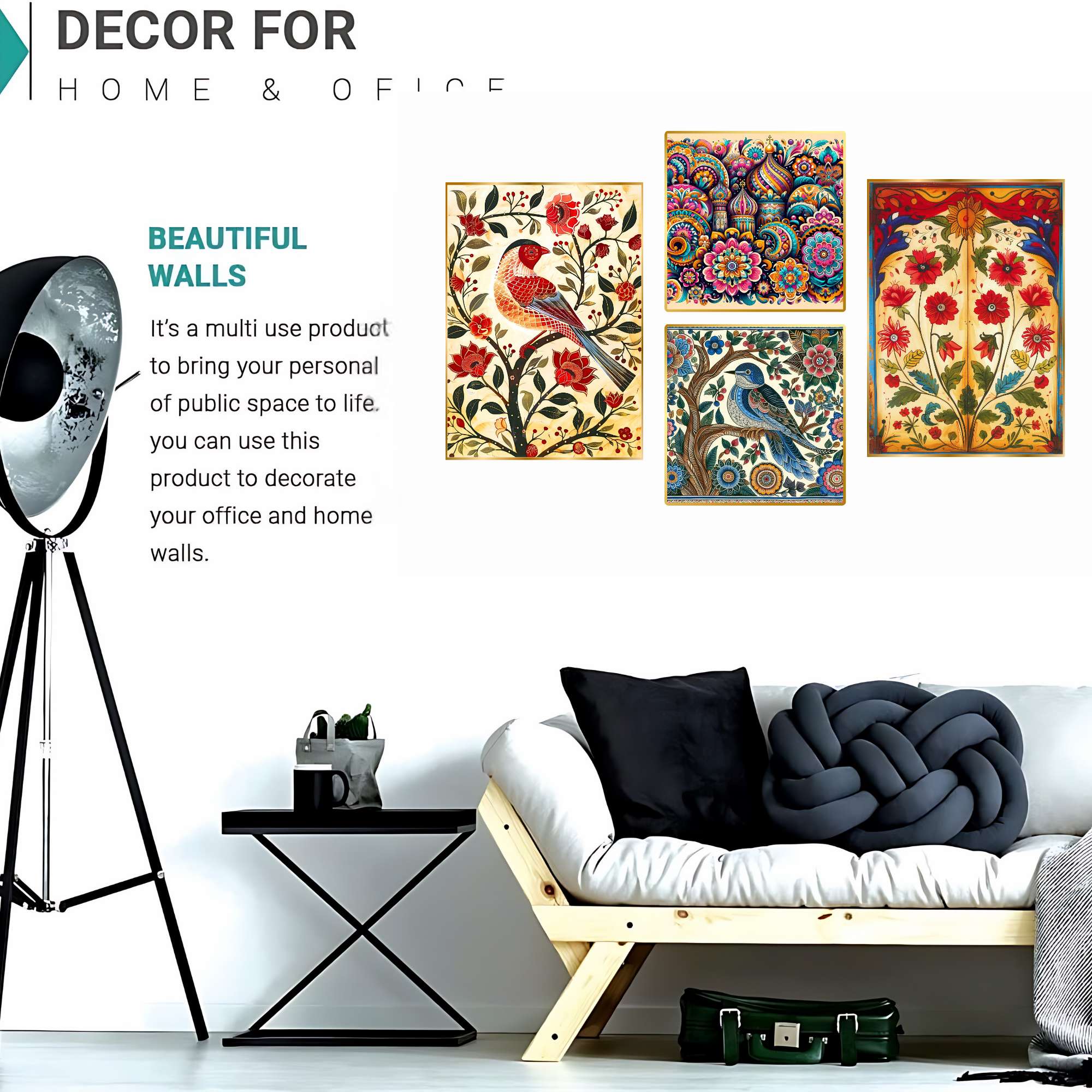 wall paintings, designed to elevate any room with their vibrant traditional charm. Perfect for a variety of settings, these intricate pieces are ideal for wall decor, whether you’re seeking artwork for your living room or bedroom. Our collection includes bold and large wall paintings that create a striking focal point, especially as big wall paintings for the living room. paintings are perfect for home decoration, seamlessly fitting into any space as wall art for living rooms or framed wall paintings for bedrooms. Whether you choose wall paintings with frames for the living room or bedroom, these pieces add an elegant, cohesive touch to your decor. Beyond living areas, these paintings also make beautiful kitchen wall decor and versatile wall hanging options. Enhance your living room wall decor with framed wall art that complements any style. Choose from various formats, including wall paintings golden frame,allowing you to customize your space with ease. Each painting blends traditional and abstract styles, offering both framed wall paintings and wall art decor that fit effortlessly into any room. Explore the beauty of art and bring a touch of culture and sophistication to your home with these exquisite wall paintings for decoration.