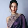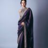 Women’s Luxurious Plum Satin Saree with Intricate Zari & Sequin Embroidered Blouse