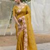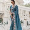 Be the first to review “Women’s Pristine White Organza Saree with Exquisite Pink & Green Floral Thread Embroidery – Complete with Matching Embroidered Blouse for Festive & Summer Wear”