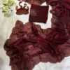 Women’s Elegant Cream Georgette/Chiffon Saree with Maroon Zari & Thread Work Border – Paired with Heavy Embroidered Blouse for Wedding & Festive Wear