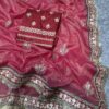 Women’s Radiant Rani Pink Banarasi Crush Saree with Gota Patti & Sequin Embellished Border β Complete with Heavily Worked Blouse for Festive & Wedding Wear